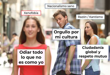Además, Kant entendía que el sentimiento de pertenencia a una nación no debía convertirse en un pretexto para negar derechos a otros. El nacionalismo, cuando se transforma en exclusión, deja de ser identidad y se convierte en ideología peligrosa. En su lugar, Kant propone un patriotismo racional: amar tu país, pero no a costa de despreciar al resto del mundo.
