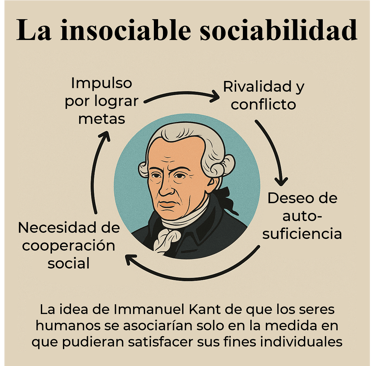 Kant lo llamó "sociabilidad insociable": nos necesitamos para sobrevivir, pero nos cuesta aguantarnos. Nos juntamos, sí, pero más por interés que por amor al prójimo. Básicamente, evolucionamos no porque seamos buenos compañeros de equipo, sino porque no nos queda otra que aprender a convivir sin tirarnos los platos.