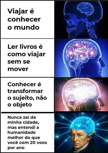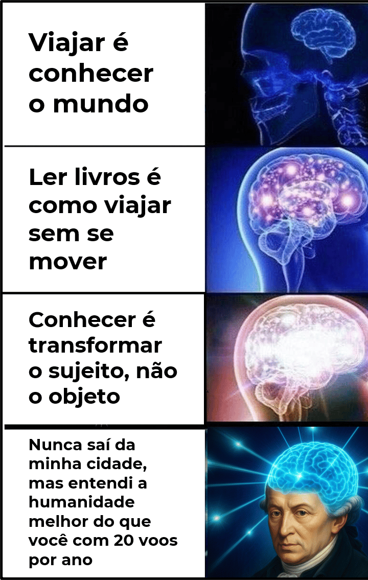 Se isso te fez pensar, rir ou querer se mudar pra um mundo sem fronteiras, comente e compartilhe nas suas redes. E lembre-se: Kant nunca saiu da sua cidade, mas suas ideias chegaram mais longe que muitos passaportes.