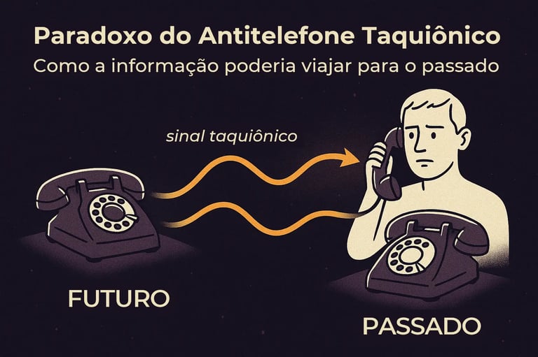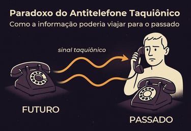 Isso gera o que os físicos chamam de “paradoxos temporais”. Um dos mais famosos é o “antitelefone taquiónico”, onde alguém manda uma mensagem pro passado pra impedir que ele mesmo a envie. Tá com dor de cabeça? Relaxa, eu também. É como apagar sua mensagem no WhatsApp antes mesmo de escrevê-la. Ou dizer pro professor “meu cachorro comeu meu dever de casa”... quando você nem começou a fazer.