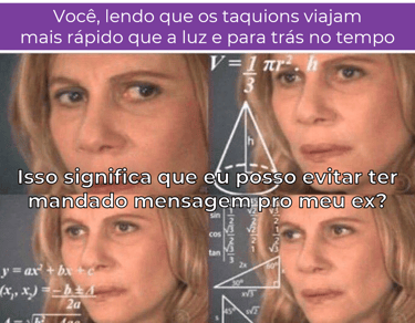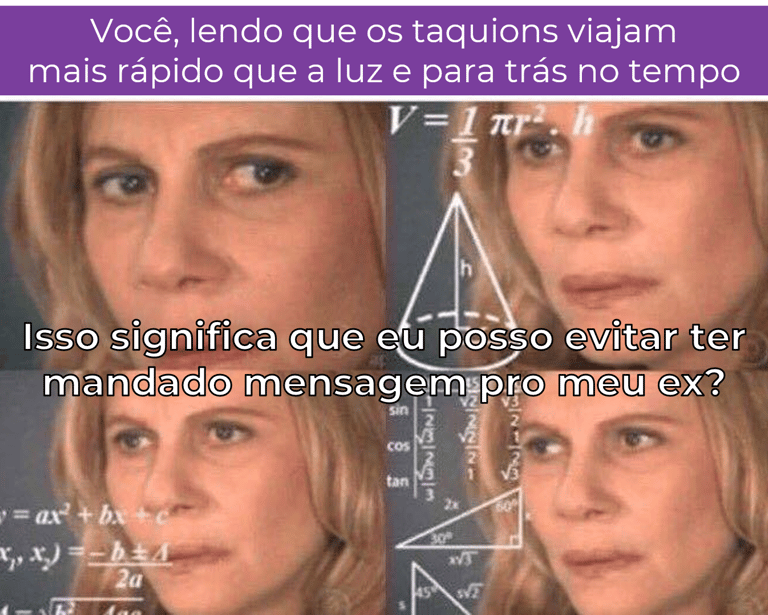 Desde pequenos ouvimos que nada viaja mais rápido que a luz. Que o tempo é uma flecha que só aponta pra frente. Que o passado é passado e ponto... com amor se paga amor 🎧🎶. Pois é... os taquions basicamente cospem nisso tudo e dizem: “kkk, que fofura suas leis”.